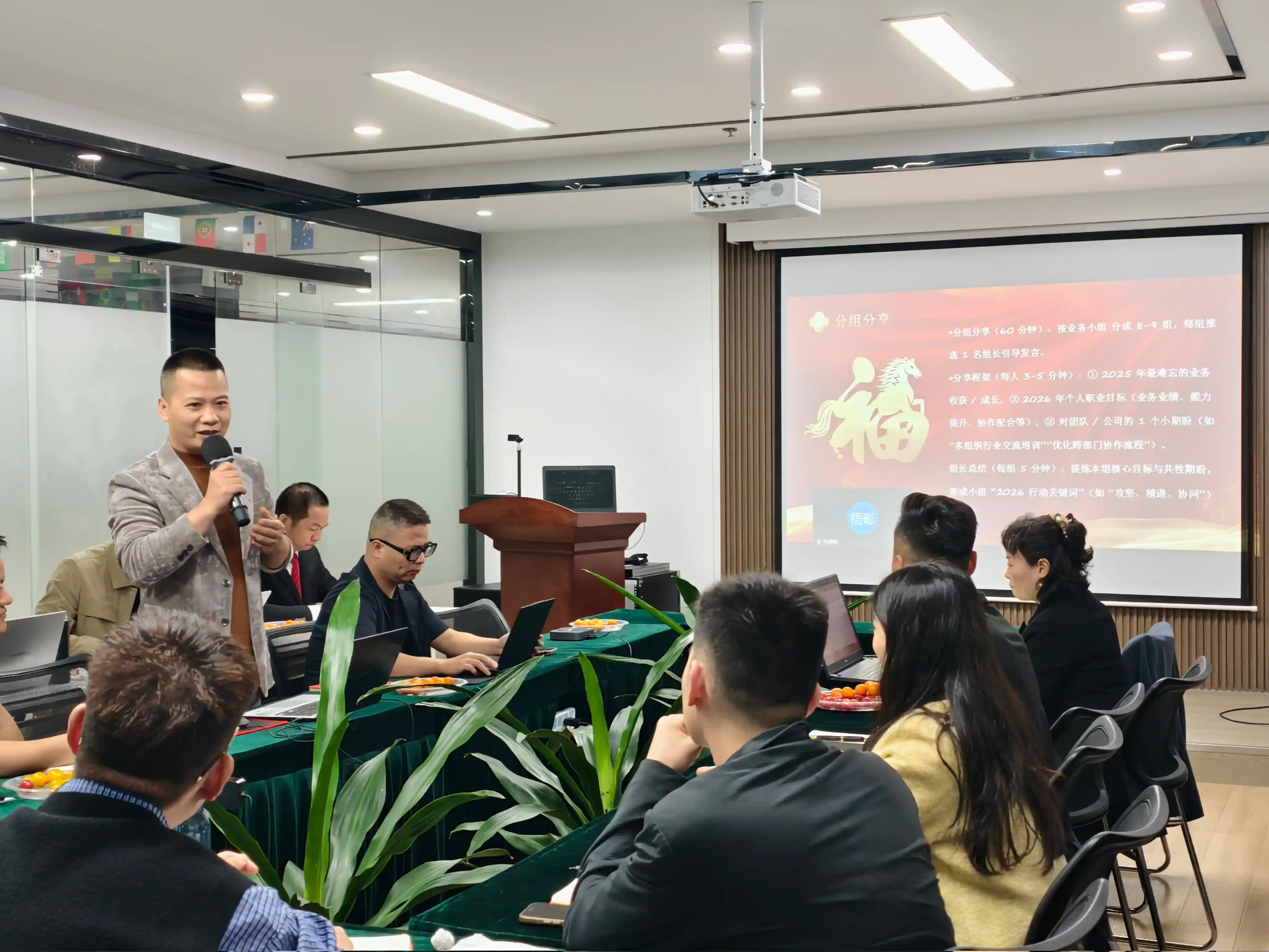 Thug an seisiún comhroinnte grúpa ina dhiaidh sin an tae-chóisir chuig a chéad bharr. Bhí deich ngrúpa i mbun malartuithe doimhne. Thóg gach ball 3-5 nóiméad chun athbhreithniú a dhéanamh ar a ngnóthachan gnó is neamhdhearmadta ó 2025, agus plé a dhéanamh go saorálach ar spriocanna agus ar dhúshláin na foirne do 2026, ag roinnt eispéiris - cibé acu faoi cheannródaithe feidhmíochta, feabhsú cumais, nó comhordú comhoibríoch - d'oscail gach duine a gcroí agus roinn siad ó chroí.