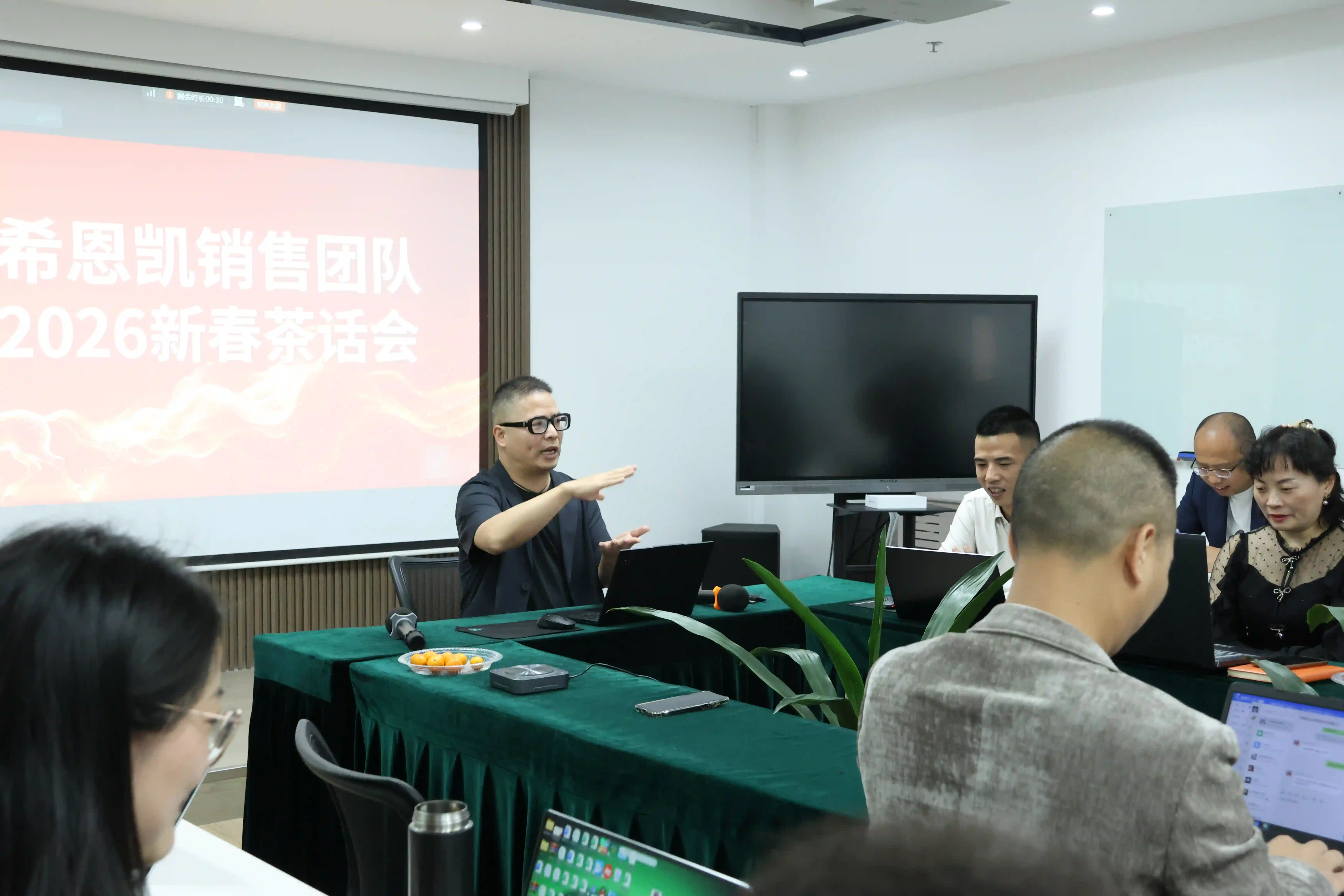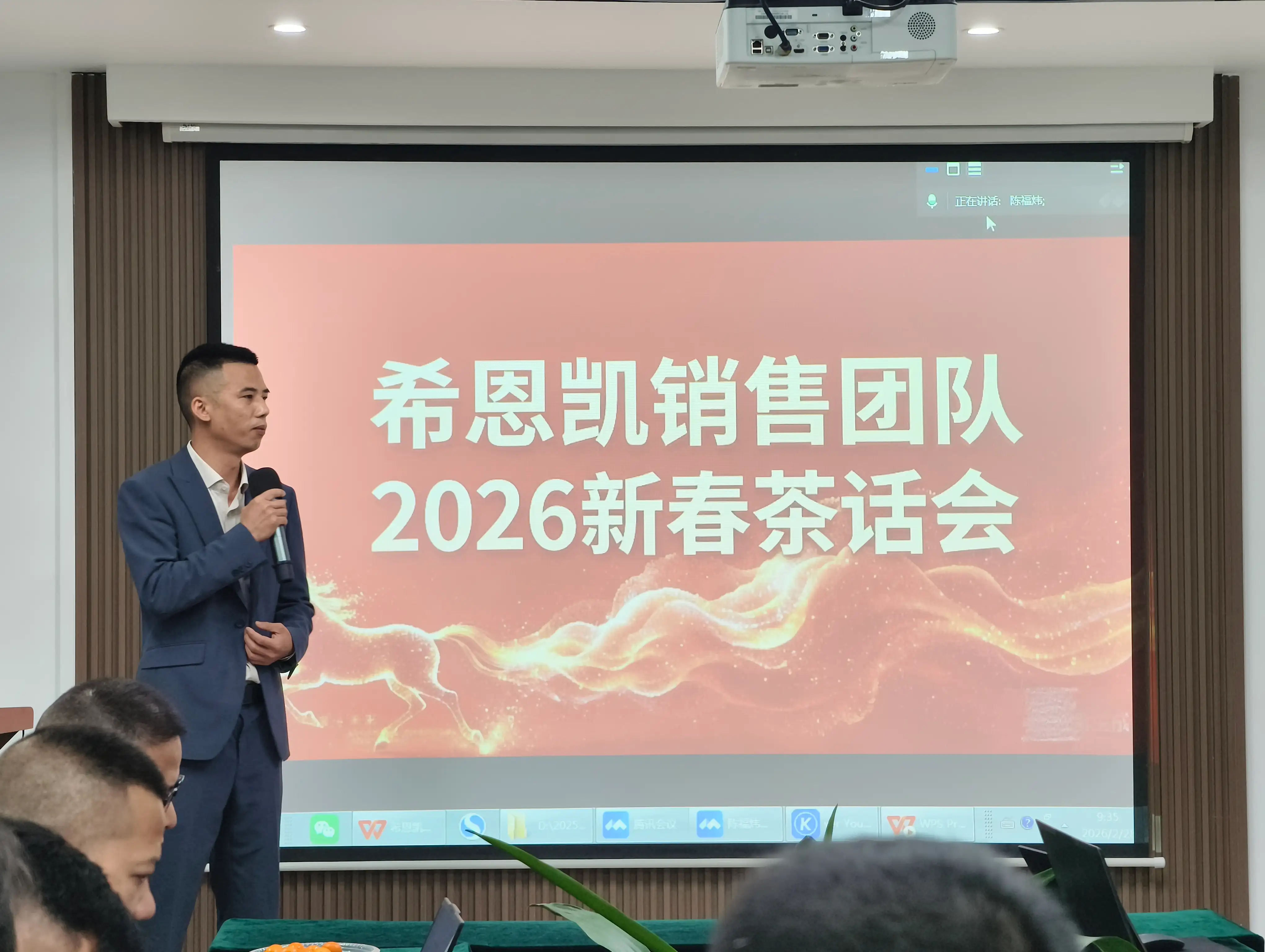 Dhearbhaigh an Cathaoirleach go hiomlán éachtaí na Roinne Díolacháin in 2025 agus d’fhreagair sé na hionchais a d’ardaigh gach grúpa ceann ar cheann. Ag tarraingt eagna as an Tao Te Ching, léirigh sé an bealach díolacháin agus fás pearsanta, ag cur béime ar an tábhacht a bhaineann le leagan amach spriocanna agus staidéar modh, féin-tarchéimnitheacht, agus nuálaíocht. Roinn sé freisin fealsúnachtaí díolacháin maidir le híomhá sheachtrach, caidrimh idirphearsanta, agus nasc mhothúchánach. Ina theannta sin, thug sé isteach beartais na cuideachta maidir le seirbhís tosaíochta do phríomhchliant, tacaíocht airgeadais, agus dearbhú tionscadail, ag spreagadh gach duine a muinín a neartú, riachtanais na gcliant a iniúchadh go réamhghníomhach, agus fás pearsanta a chomhtháthú le forbairt na cuideachta. Chríochnaigh sé a aitheasc trí spreagadh a thabhairt don fhoireann tabhairt faoi dhúshláin 2026 le stíl nua agus ionchais nua. Shoiléirigh an seisiún Ceisteanna agus Freagraí ina dhiaidh sin an treo agus chuir sé le meanma na foirne.